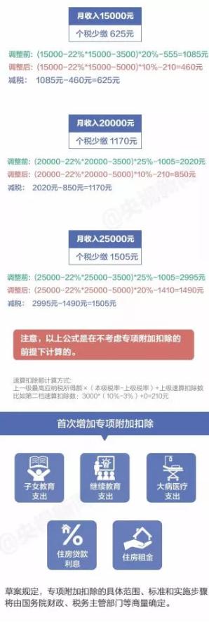 個稅新版“稅率表”公布 你每月將少繳多少錢
