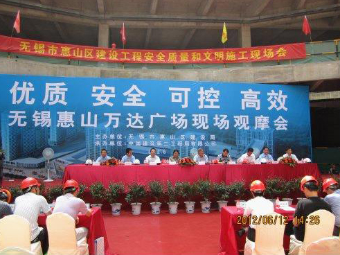 惠山萬達秉承“誠信、盈利、和諧、超越”的項目核心文化,在六個職能部門、十一個工作組合計80多人的帶領下,對項目的質量、安全、文明施工進行全方位的管理。區(qū)建設局通過組織此次對萬達項目的觀摩,學習借鑒企業(yè)在創(chuàng)建精品工程過程中的管理理念和科學的管理方法,以此來提高我區(qū)建設行業(yè)的管理水平,確保全區(qū)各類項目的順利推進,并多創(chuàng)優(yōu)質精品項目?,F場會上播放了中建二局的宣傳片,萬達投資有限公司、中建二局和江蘇五星等企業(yè)代表作了交流,全體參會人員在區(qū)建設局局長貢培生、中建二局黨委副書記樊學民等領導的帶領下,還參觀了萬達施工現場。