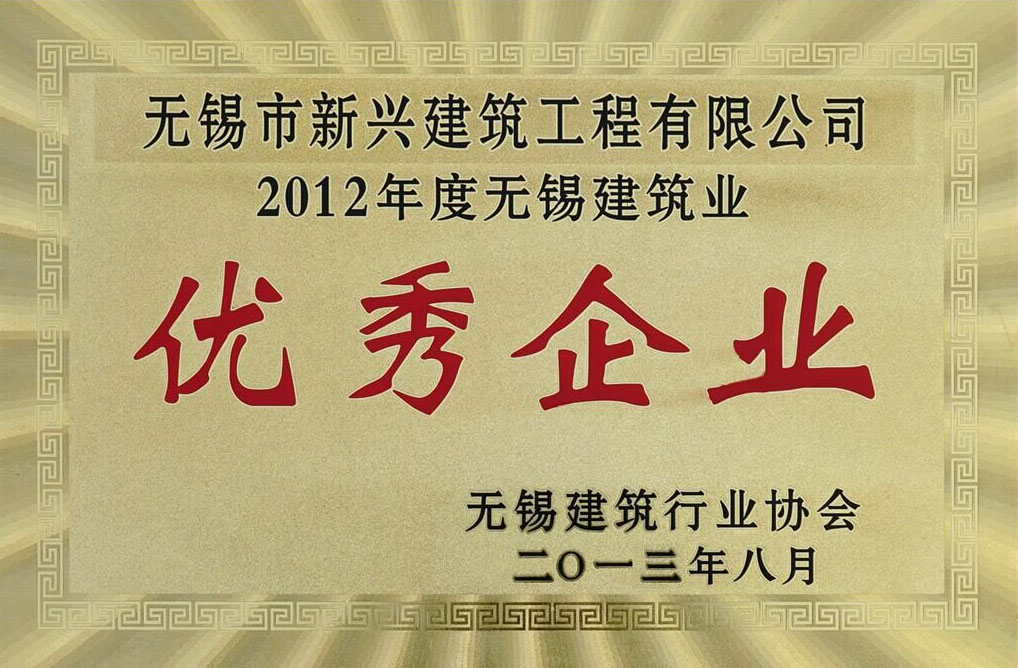 2013.08 2012年度無(wú)錫建筑業(yè)優(yōu)秀企業(yè)