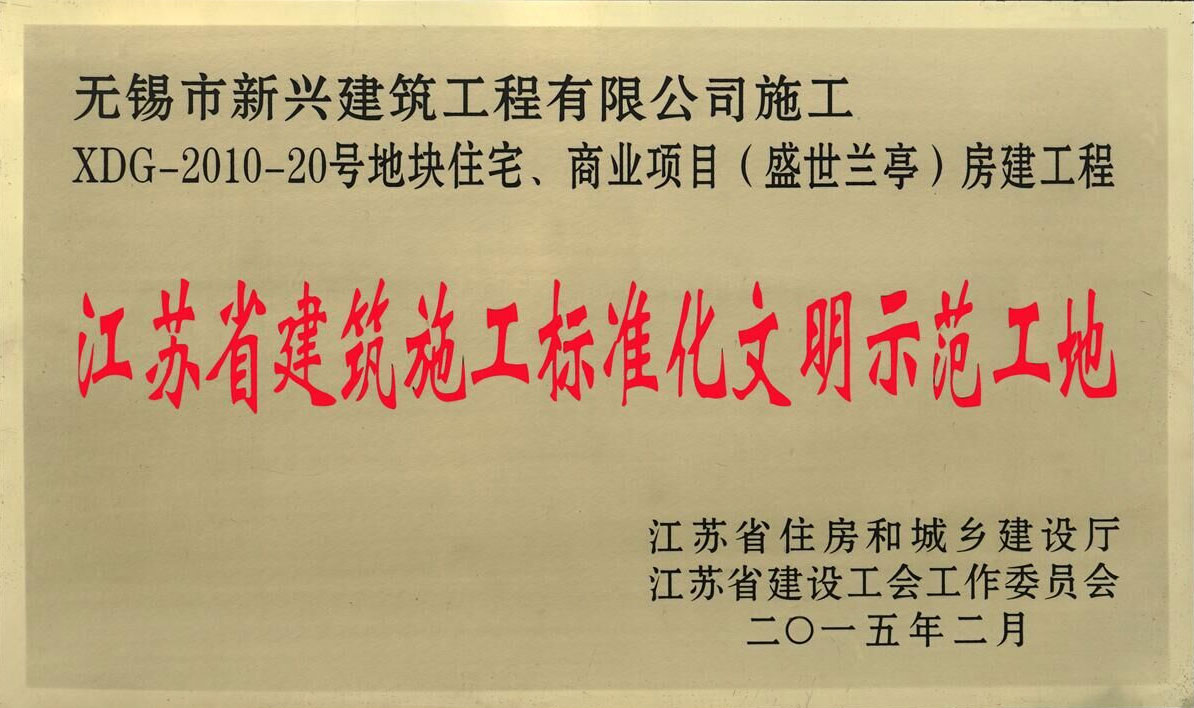 2015.02 XDG-2010-20號地塊住宅、商業(yè)項目(盛世蘭亭)房建工程 江蘇省建筑施工標準化文明示范工地