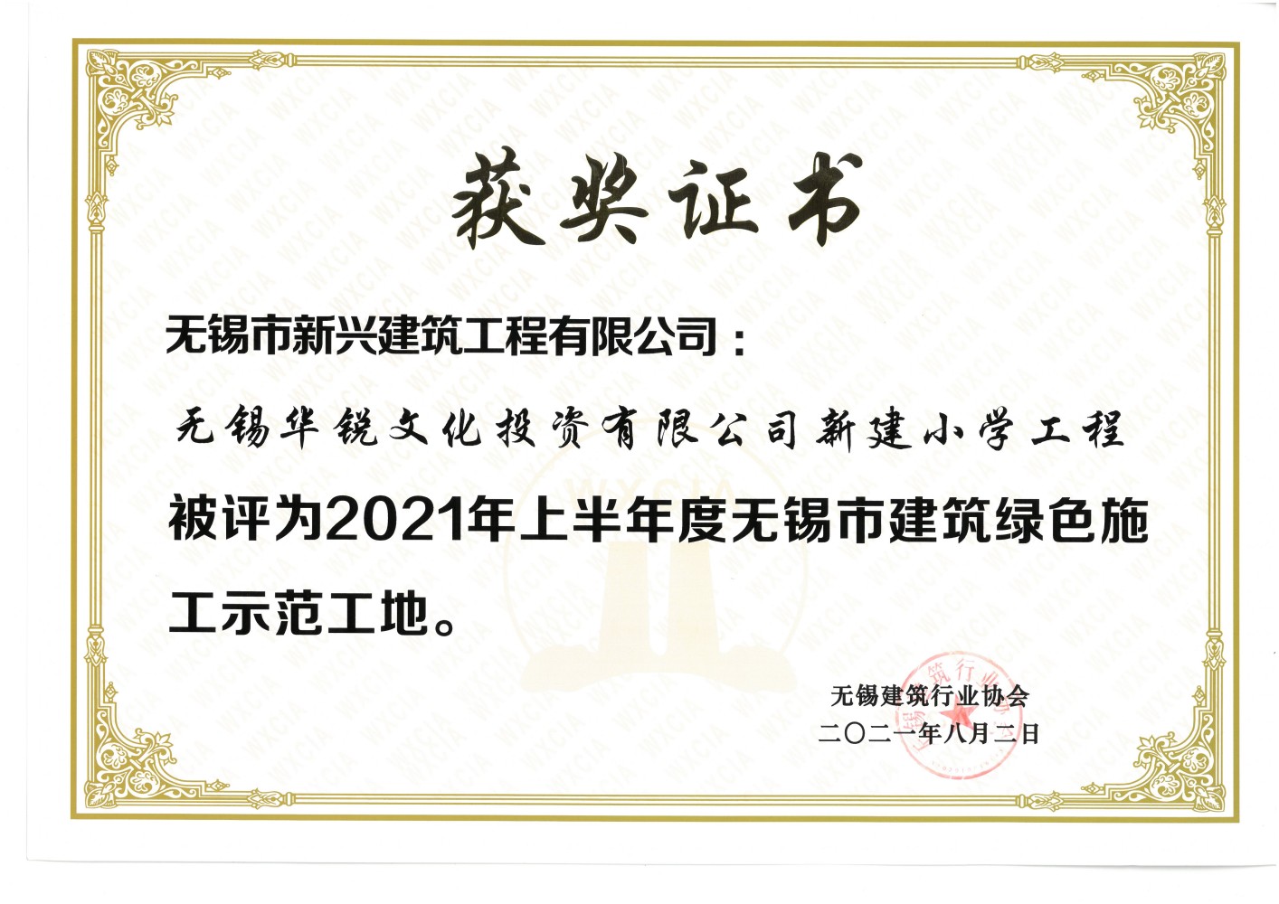 2021.08 華銳小學2021年上半年度無錫市建筑綠色施工示范工地