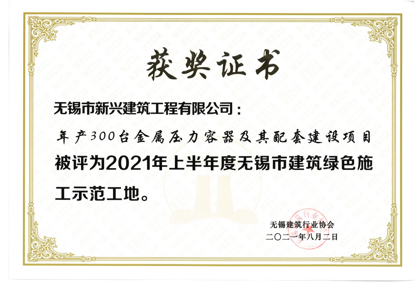 2021.08 化工裝備年產(chǎn)300臺2021年上半年度無錫市建筑綠色施工示范工地